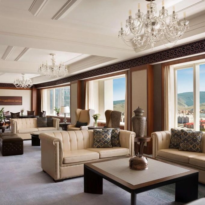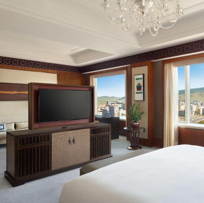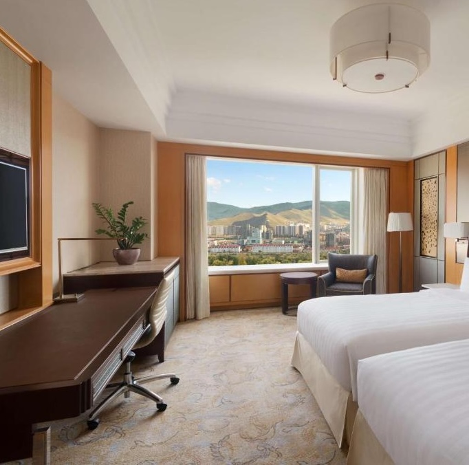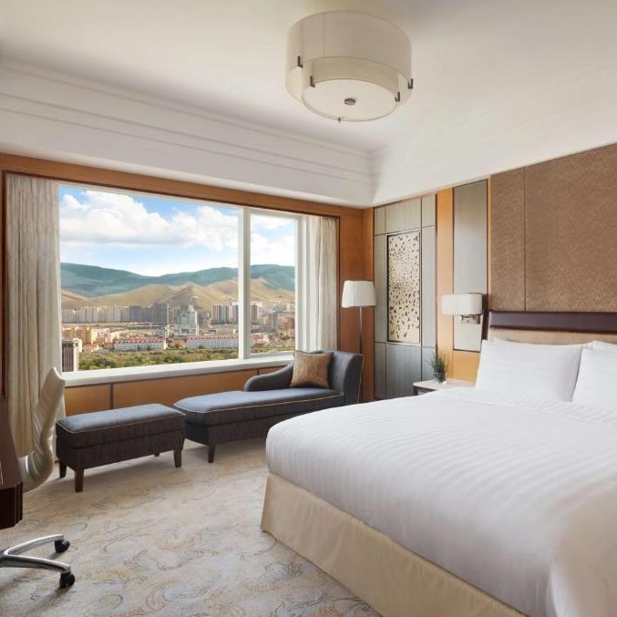 The city's largest hotel faces Sukhbaatar Square directly, connected to a four-story mall of Mongolian cashmere boutiques, felt-shoe makers, and international retailers. Guestrooms are genuinely spacious, starting at 42 square meters, with floor-to-ceiling windows looking out to either the amusement park and Bogd Khan Nature Reserve to the south or the square and parliament building to the north. The Horizon Club lounge on the upper floors includes evening drinks and a daily buffet for guests on that level. The fitness center and pool are considered the best in the capital, hotel or otherwise.