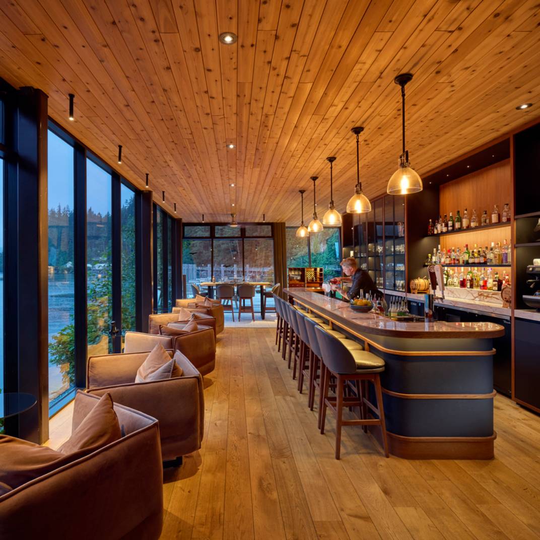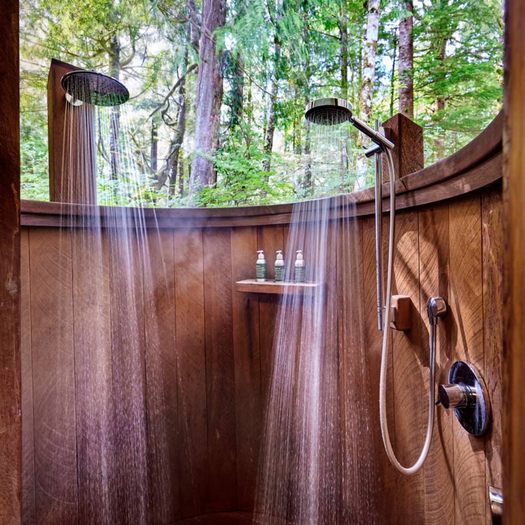 The main attraction, of course, is the outdoors. Excursions available to guests include canyoning, wildlife tours, and a “glacial immersion” cold-plunge experience. Clayoquot takes sustainability seriously with a comprehensive recycling program, composting toilets, organic gardens, and gravity-fed turbine generators — and the Environmental Legacy Program, a $3 million, five-year commitment to environmental research and conservation, is partially funded by lodge revenues.