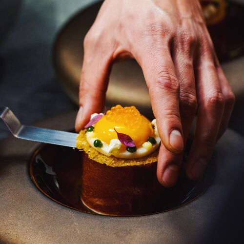 From the cosy chalet vibe and the cowbells in the lavatory to the food and the delightful surprises on the wine list, everything about this place is an ode to Savoie, the homeland of chef Thibault, who runs the business with his wife Dieuwerjte. His unique signature style is shaped by authentic flavours, creative impulses and technical ingenuity, with a special emphasis on spiciness and vibrancy. For instance, the catfish comes in three intricate dishes, one of which features a fillet aged for eight weeks and marinated with miso and sourdough, accompanied by a frothy beurre blanc, parsnip purée and a sweet-and-sour vegetable chutney. Be sure to sample something from the outstanding cheese trolley! Expect Alpine cuisine with natural undertones and a focus on preparation techniques.