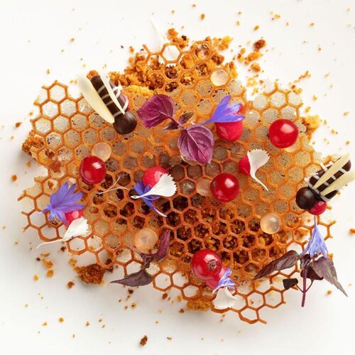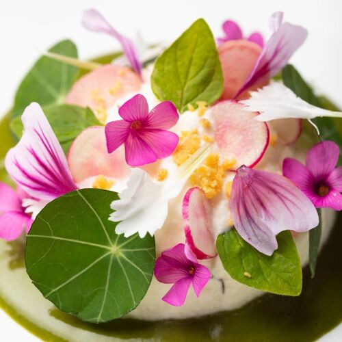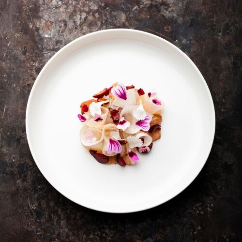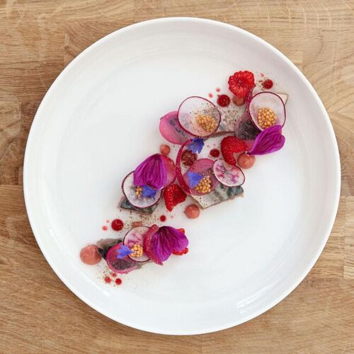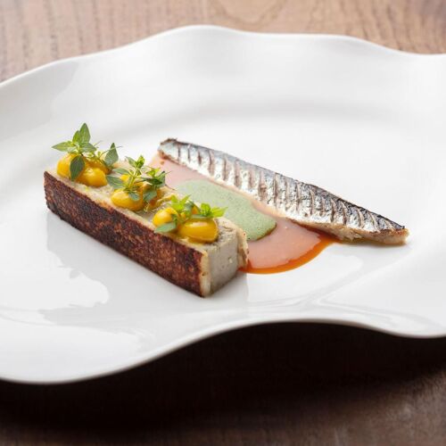 A short walk from Claude Monet’s house, this half-timbered Anglo-Norman 1912 edifice extends an invitation to relax and enjoy the good things of life. The tasteful interior mixes Art deco features (worn blue and white floor tiles, peacock blue walls) with 1960’s white leather armchairs and glass and rosewood tables, while the lovely patio is flanked by a delightful, wooded garden. Normandy born chef, David Gallienne, who trained at the Manoir du Lys, continues to work with some of his former suppliers from Orne and Dieppe fishermen, whilst sourcing new ones. His inventive recipes feature unorthodox flavours and textures. The chef has opened a nearby guesthouse for overnight stays and a delicatessen in Vernon.