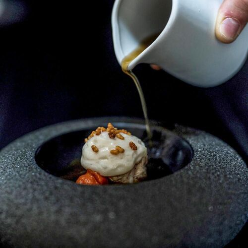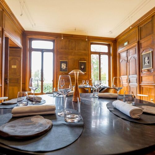 A large 19C villa set in verdant grounds is home to this snugly welcoming establishment with only six tables. The period herringbone parquet flooring and mouldings contrast with the pared-back interior. The single set menu shines the spotlight on first-class ingredients from Bigorre and Béarn in a new take on regional recipes that are as mouthwatering as they are deftly crafted.