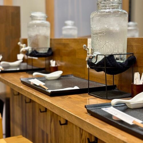 The chef takes pride in his “Shio Soba” (salt noodles), his quest for a bowl of perfection. Taste the seaweed—sea lettuce and nori—and you can feel the rustle of sea breezes. Triple soup of fish, shellfish and chicken is prepared using Pi-Water, a water that is said to be extremely similar to water in living tissue. High hydration ramen noodles, prepared with a blend of three types of wheat flour, produces a texture similar to noodles kneaded by hand. Three types of chashu are served as well, combining pork and chicken. Bringing out the best in soup, noodles and chashu for a triple treat.