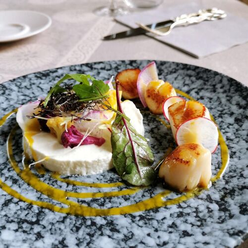 Chef Vincent Berthomeau and his spouse Pascale have set up shop in an edifice dating from 1900 that is slightly outside the city centre of Nantes. Their handsome mansion is further enhanced by a conservatory, a terrace and a garden. The regulars return for the chef’s generous seasonal score and his menus vary depending on what he finds on his frequent forays to Talensac market. Enticing dishes such as a cassolette of langoustines and pleurote mushrooms in a flavoursome seafood stock or an exquisite chocolate, butterscotch and caramelised peanut tartlet, further jazzed up by a carrot sorbet and carrot coulis.