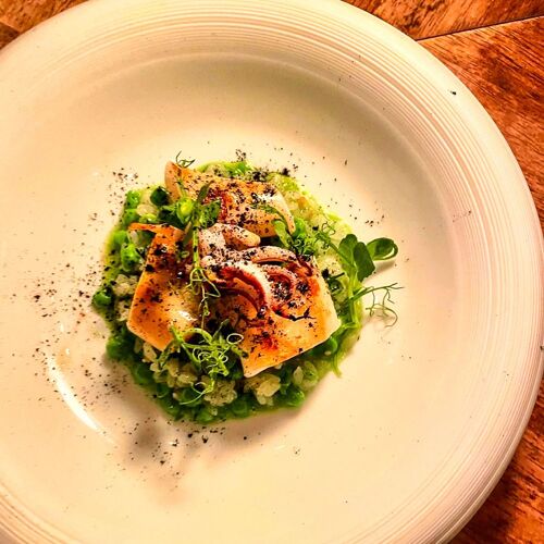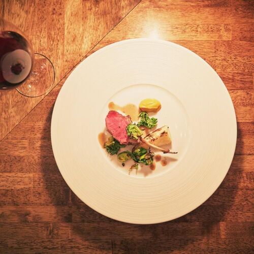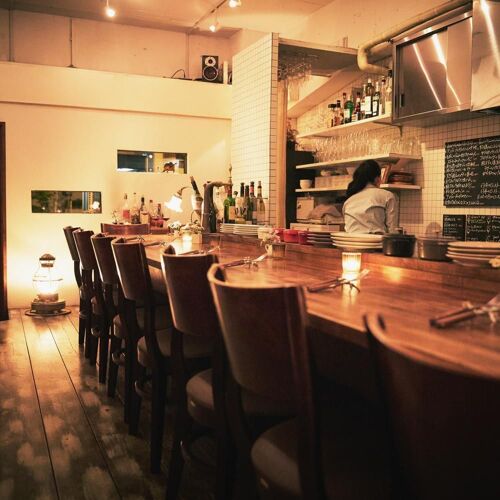 The key to happiness here is the blackboard menu. Sea urchin with new onions, whitebait quiche, veal cutlets and other offerings are chalked simply on the board. The chef is a fount of knowledge; ask about the fare and conversation flows, heightening anticipation of the meal to come. The bistro is run by a couple whose concept is a restaurant that makes people happy. Spend a warm and comfortable time in this casual scene.