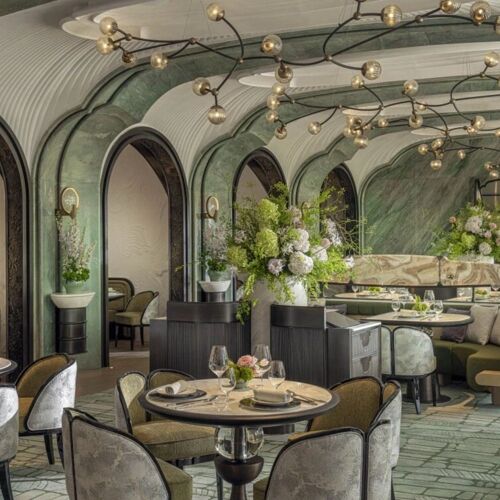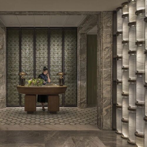 Jade-coloured archways, silk-clad panels and organic light fixtures evoke a classical Hangzhou garden with a stylised touch. Similarly, the seasoned fine dining kitchen team adds novel twists to Ningbo classics. Marinated raw crab in a spicy sour sauce boasts briny sweetness, gelatinous texture and buttery roe. Crispy skin pigeon leg is deboned and stuffed with the bird’s breast; Sichuan pepper cuts through the richness.