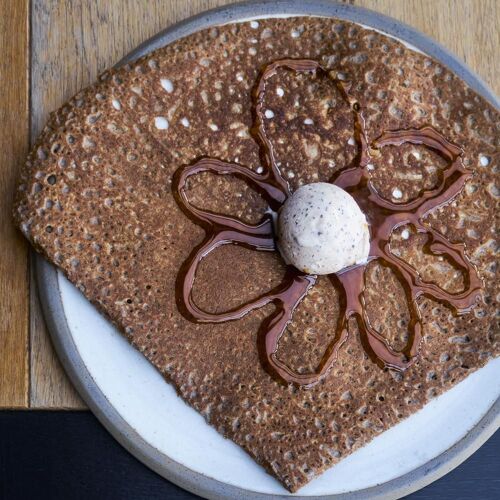 On the port of Cancale, Breizh Café has one motto: "A new take on crêpes." After all, the concept was originally born in Japan! The owner, Bertrand Larcher, was the first to export Brittany's galettes (buckwheat pancakes) to Tokyo, and several Japanese restaurants later, he has founded one back home. The produce is organic (eggs, cheese, meat) and first rate. The crispy flavoursome galettes and wafer-thin, soft pancakes are made entirely traditionally. The filling depends on your mood, ranging from classical to unusual: artichoke rolls, scrambled egg, Comté cheese or Saint Malo wakame seaweed. The upstairs window commands a splendid view of Cancale port. Something of a local landmark, it is often fully booked.