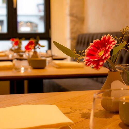 A hotspot for Japanese cuisine is hidden away in this unassuming town house in Frankfurt's Ostend neighbourhood. Having recently expanded his skill set and his knowledge of the Japanese culinary arts in both of Yoshizumi Nagaya's Düsseldorf restaurants, Masaru Oae now proposes two omakase menus composed of seven or nine courses – one with fish/meat, one vegetarian. The quality of the ingredients is second to none. Dishes such as scallops, kale, dashi butter sauce, as well as the excellent sushi, successfully draw on both classic and modern Japanese cuisine, while remaining open to the odd European influence. The aesthetics of the food have a major part to play too, as demonstrated by the elaborately decorated medley of starters. In an unpretentious and pared-back setting that evokes the Far East, diners take their seats at small tables or at the food counter (where they can watch the chef at work). Top tip: Opt for the sake pairings served with the set menu.