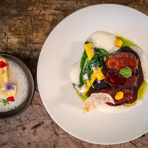 The menu at this inviting restaurant features a fantastic range of regional classics and Asian dishes. Popular choices range from Wiener schnitzel to pan-fried Arctic char or Thai curry. No matter what you plump for, you can expect high-quality ingredients, skilful preparation, character and plenty of flavour. Warm wood panelling lends the dining spaces a cosy rustic feel; friendly and professional service make your dining experience complete. In summer, the charming terrace beckons.