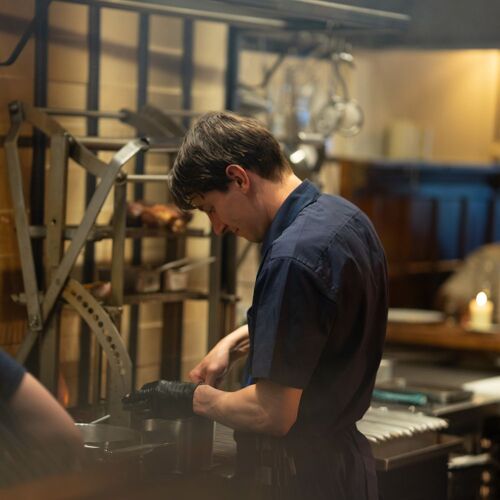 Veneur has an old-school vibe. The nostalgic charm of this building, with its wooden panelling and beautiful mouldings, has been subtly rejuvenated with details such as modern lighting. The terrace? It could easily be in Paris. The menu also has a bold edge. Yoran Jacobi and Moriaan Koeleman's product-driven kitchen gives pride of place to meat, grilled dishes and fire. For example, you start with a canapé of black pudding with grey shrimp, while briefly grilled rabbit is accompanied by morels and a creamy gravy with cognac. And how about pigeon with a cherry glaze and a gravy thickened with the giblets? Lovers of strong flavours will want to try everything on the menu! Be sure to check out the wine list, which has been expertly compiled.