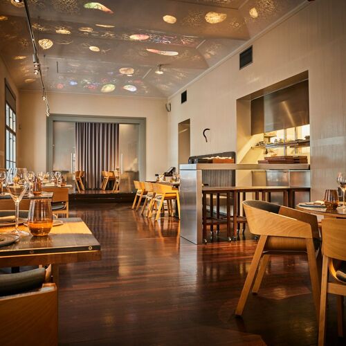 Two friends run this chic, minimalist restaurant in a stylishly understated way. Available in a longer or shorter form, their tasting menu comprises creative, well-balanced dishes with a strong focus on seasonal produce and Czech ingredients. Don't be surprised to see a sauce being flambéed tableside or smoke rising from a box (containing a delicious brioche glazed with duck fat)! The excellent medium-rare fallow deer also deserves a mention, as well as ‘Lamb, kale, watercress, green tea’. The friendly and attentive front-of-house team, which includes a sommelier, will be happy to recommend and explain apt wine pairings. The two different versions of the shorter lunchtime set menu are served on weekdays and at the weekend, respectively.