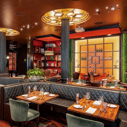 This tasteful, elegant restaurant is located in a historical building that was erected in 1913 to house a department store and later converted into the Carlton Elite hotel. They serve classic, top-notch cuisine; in the evening a more modern five-course menu with beef Wellington, tartar and crêpes Suzette is also available. Great wine list, including an impressive selection of 40 or so types from the Domaine Romanée-Conti.