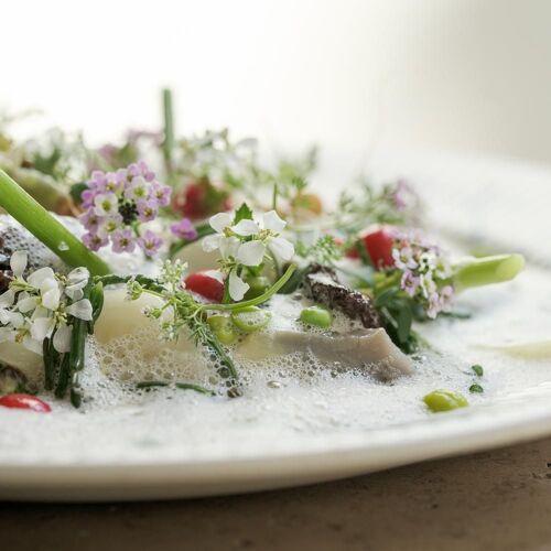 Un repas chez Gert De Mangeleer et Joachim Boudens ne laisse pas indifférent. Tout commence par le cadre élégant du Botanic Sanctuary hotel, qui vous projette dans un autre monde. Béton et tons gris caractérisent le décor de ce restaurant intime, dans une architecture moderne qui laisse sans voix. Pour préserver l’effet de surprise, il est demandé de ne publier aucune photo sur les réseaux sociaux. Nous ne dévoilerons pas non plus l’extraordinaire table du chef où chaque hôte est invité à passer un moment et observe le chef à l’œuvre. Le chef De Mangeleer y appose sa signature, avec un accent encore plus prononcé sur l’Asie. La carte met en avant la devise « Simplicity isn’t simple », qui définit bien cette cuisine. On connaissait la précision exceptionnelle de ce chef créatif qui travaille minutieusement ses ingrédients dans des associations audacieuses. Il cuit ainsi un pigeon d’Anjou au foin avec des herbes, avant de terminer la cuisson à table au binchotan, et de lui adjoindre des accompagnements divers comme du foie gras fondu, de la betterave rouge, de la fraise des bois et un intense jus de cuisson du pigeon avec de l’ail fermenté. Le talent de ce chef s’exprime dans son habileté à associer raffinement et idées originales qui subliment les saveurs. Il revisite les techniques, ainsi que les recettes classiques à sa manière. Un superbe voyage dont vous vous souviendrez longtemps.