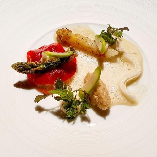 It is absolutely worth climbing the 23 steps of the beautiful steep wooden staircase that leads to this tasteful, upscale restaurant, which has been designed with an eye for detail. In this historic location (Munich's oldest town house, where the city's history started to be recorded in 1552), Tohru Nakamura – a Munich-born chef of German-Japanese descent – artfully bridges the gap between classic French and European cuisine and the culinary traditions of Japan. The combination of ingredients and flavours from both cultures makes for a unique twist, for example, in the perfectly cooked, delicately aromatic Koshihikari rice with excellent regional trout caviar and a hint of wasabi, as well as an intense beurre blanc made from fermented rice, sake and elderflower. A tasting menu comprising 10 or eight courses is proposed. The attentive waitstaff are always on hand to elucidate the chef's culinary concept. When it comes to wine recommendations (tip: Rieslings), you are in the best hands with sommelier Christian Rainer. A nice touch: Diners are even greeted with a tour of the kitchen!