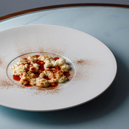 This new venture by young chef Luca Abbruzzino is set on the first floor of a historic palazzo in the town center, now transformed into a refined boutique resort with six exclusive rooms. The experience begins in an elegant lounge, perfect for an aperitif, before moving into one of two intimate dining rooms, each seating guests at just five ellipsoidal tables. Here, the chef unveils his surprise tasting menu: a sequence of small courses bound together by creativity, technique, passion, and love for his land. A wine pairing is offered, but guests can also confidently rely on the maître-sommelier, whose expertise ensures the perfect bottle or glass for every dish.
