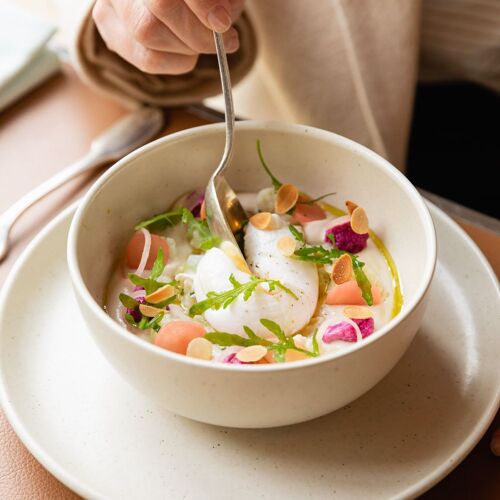 Au cœur d'un vaste domaine boisé, le bistrot chic de l'hôtel Les Sources de Cheverny propose une cuisine de saison fine et soignée, véritable tour d'horizon du Val de Loire, en même temps qu'ode aux circuits courts : légumes d'un maraîcher de Mont-Près-Chambord, fraises de Sologne, échine de porc roi rose de Touraine rôti à la cheminée... Cette dernière trône dans la salle à manger : ici, la cuisson au feu de bois, c'est une spécialité !