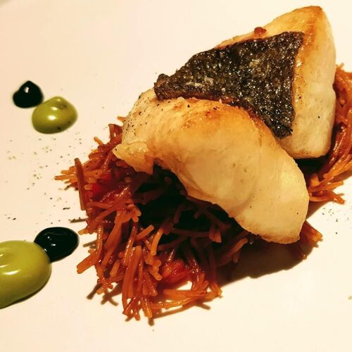 In an excellent location next to the Retiro park, Alabaster is home to a gastro-bar with high tables for an informal supper, an impressive glass-fronted wine cellar, and a spacious dining room complemented by two private spaces. Here, the emphasis is on updated seasonal and traditional cuisine, with the à la carte divided into two parts (Comparte and Disfruta). There’s also a tasting menu option named after the restaurant. Dishes include grilled scallops with a bone marrow emulsion and breadcrumbs; Galician stew ravioli with an “ajada” sauce and fried cabbage; and hake with a lemon pil-pil sauce and spinach.
