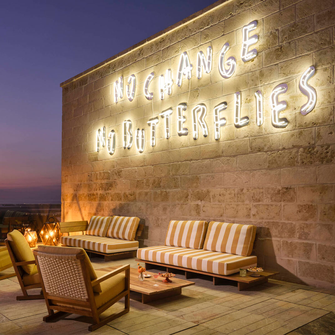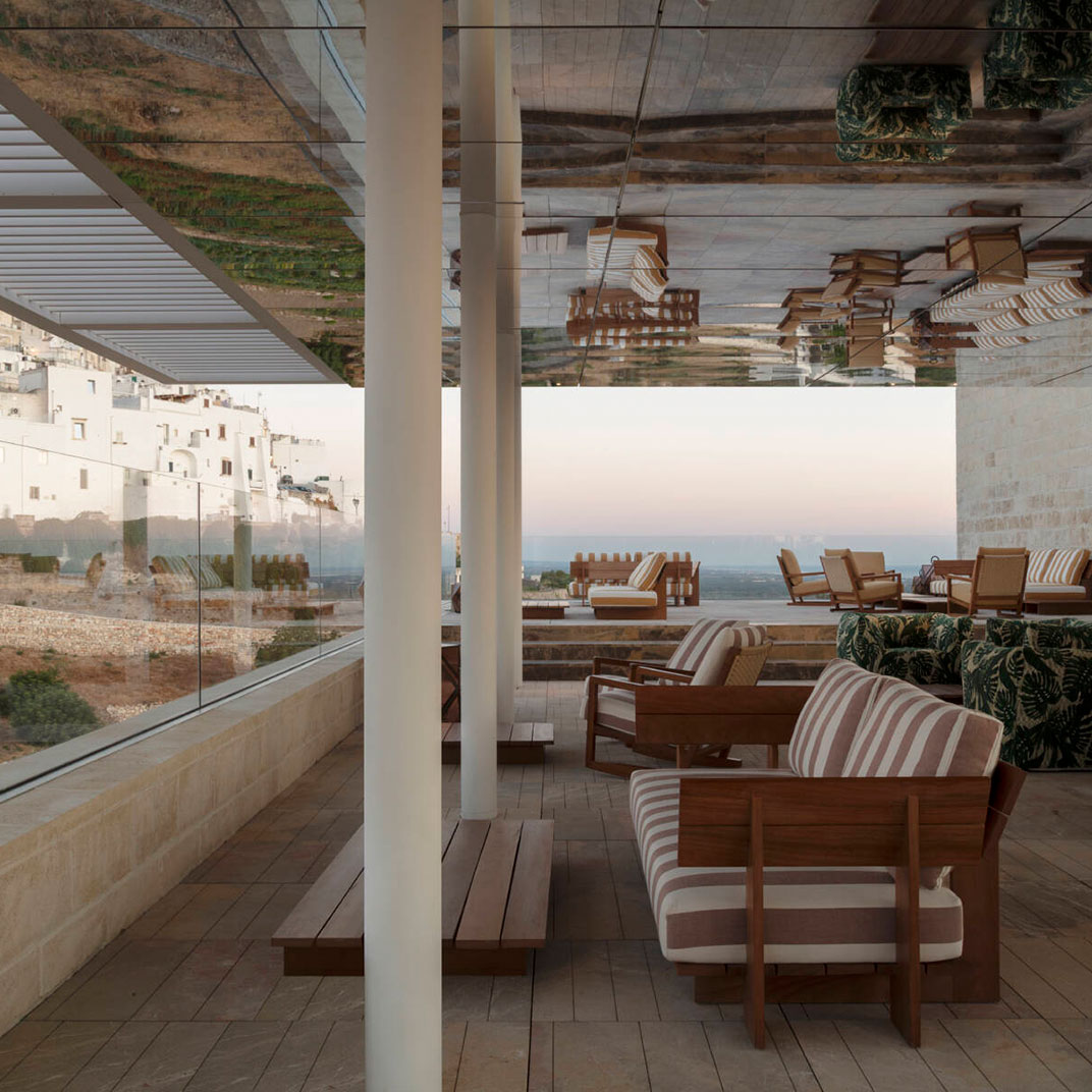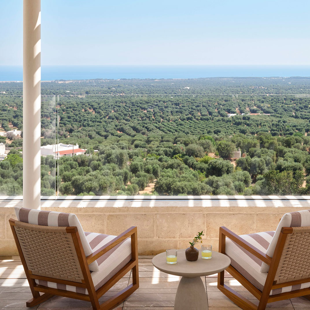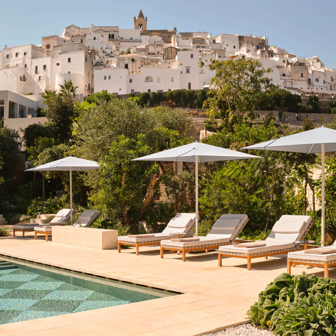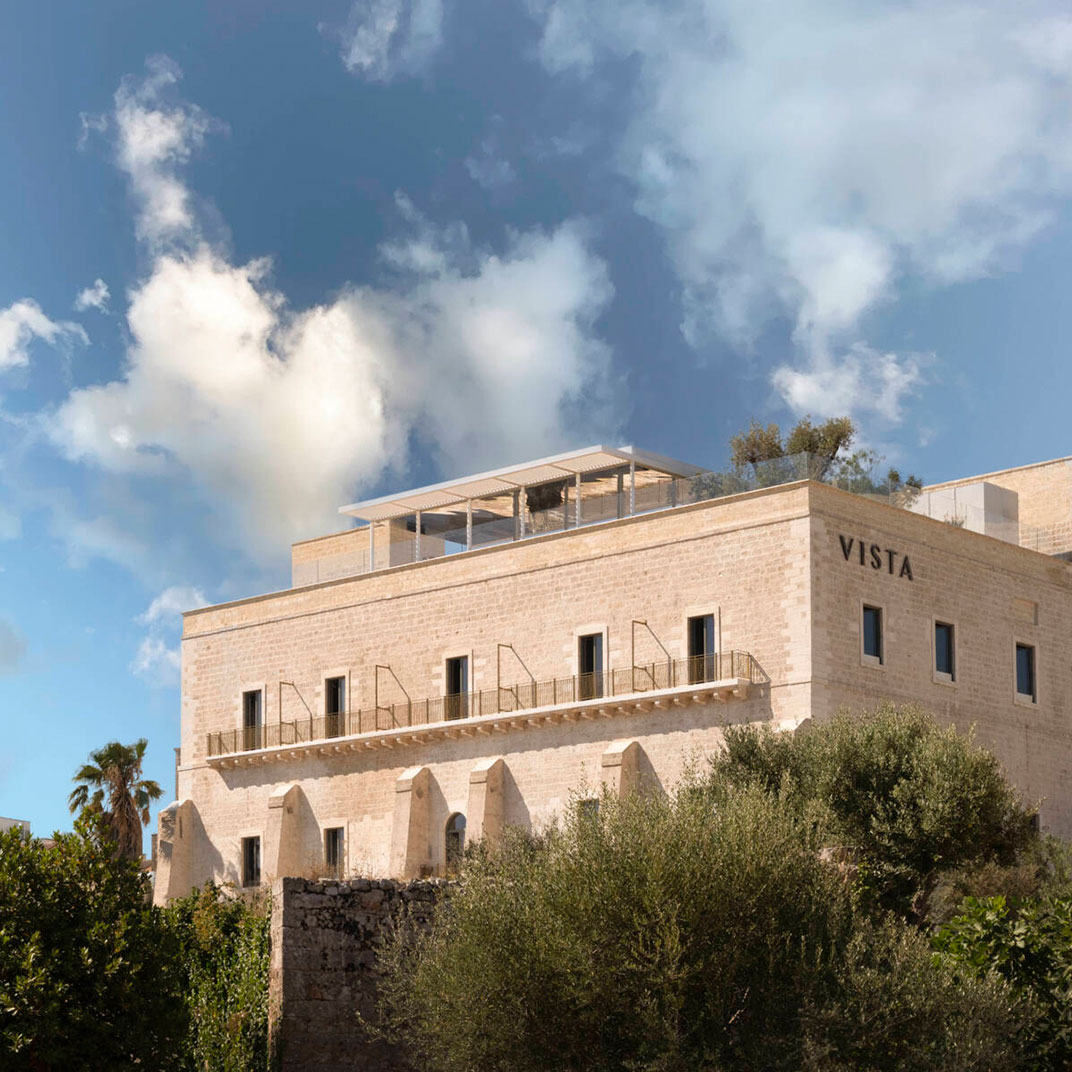 Between Ostuni’s whitewashed hilltop streets and the Adriatic, Vista Ostuni draws on Puglia’s contrasts: heavy stone walls set against airy vaulted ceilings, shaded interiors giving way to sunlit gardens, the sea on one side and endless olive groves on the other. The hotel’s 28 rooms and suites highlight local craft through stone, wood, and hand-worked textiles, each space carrying its own character. The spa flows into the gardens with two pools, while two restaurants celebrate the seasonality and generosity of southern Italy.
