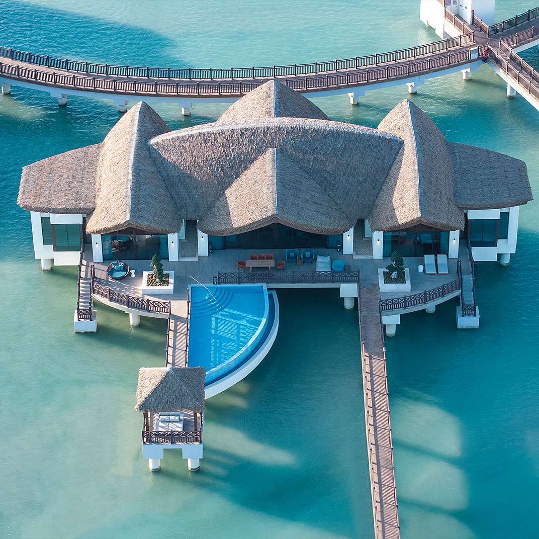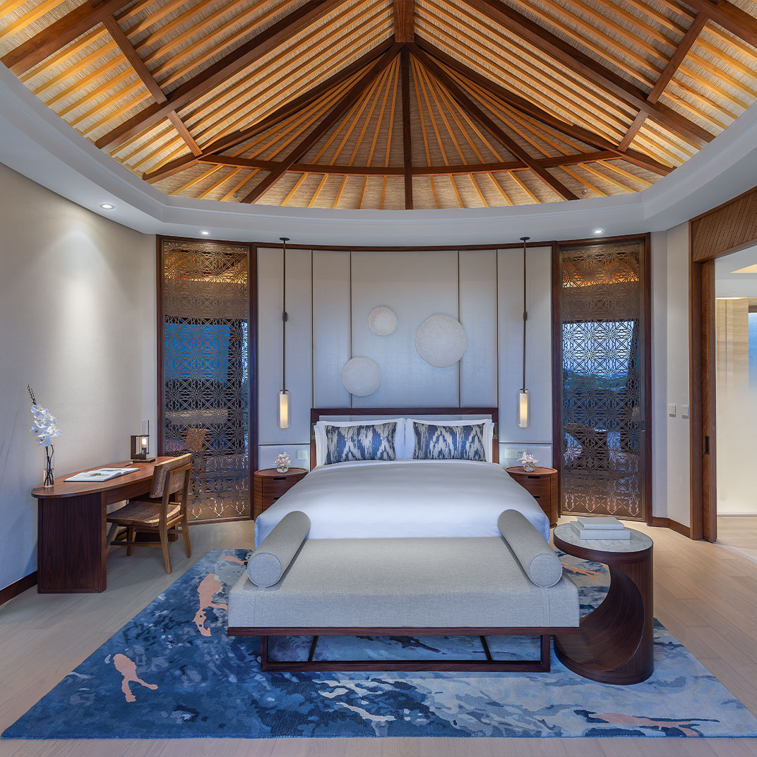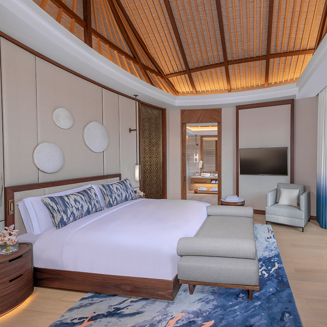 There are plenty of dry-land accommodations as well, which overlook the property’s gardens and beach. But it’s fair to say it’s the villas that make headlines: not just the overwater villas but the Peninsula villas as well, whose pool decks extend out over the coastline and take in panoramic sea views. The comforts throughout, naturally, are first-rate, and the spaces are generous at all levels.
