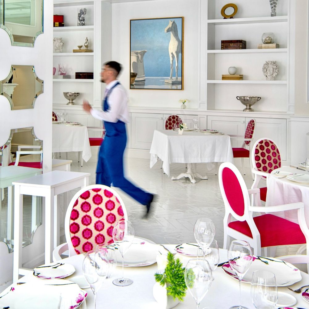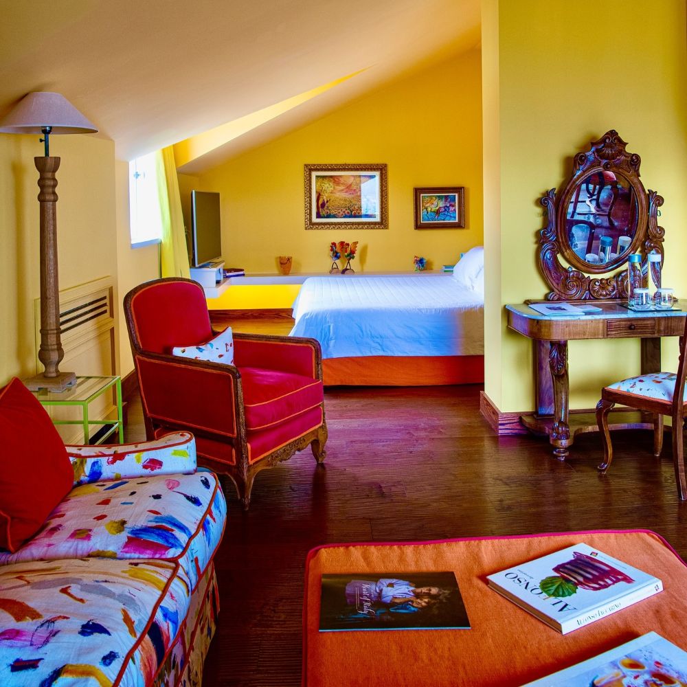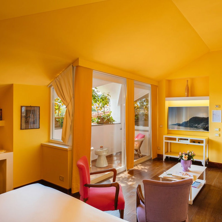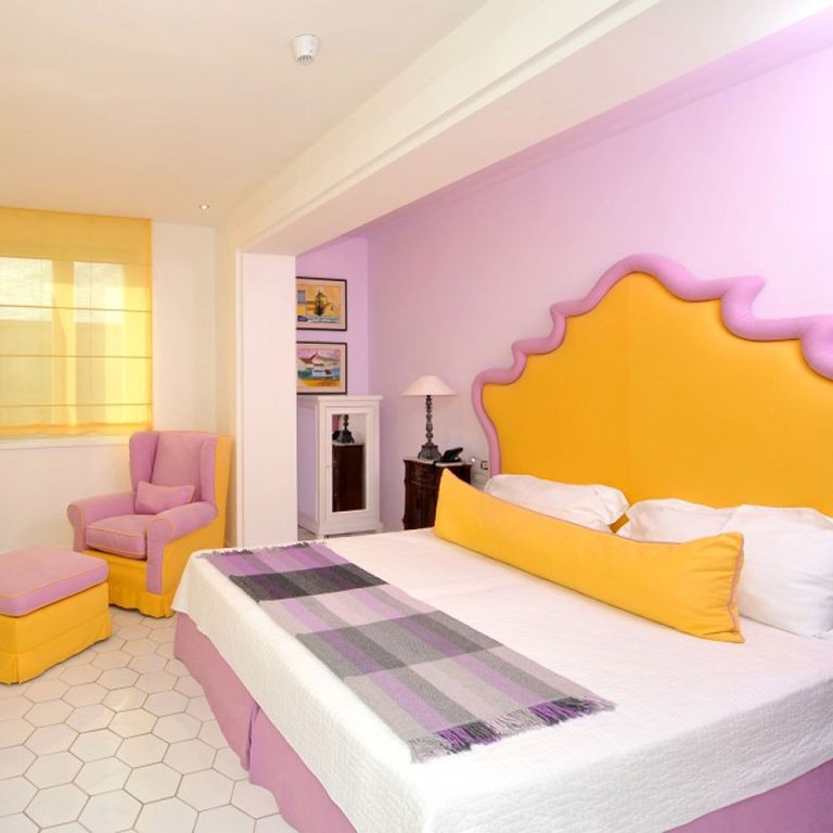 While the menu at Don Alfonso 1890’s starred restaurant may be more or less what you expect, given its setting just inland from the Amalfi Coast, it’s safe to say the interior design probably isn’t. This renovated 19th-century house, in Sant’Agata sue Due Golfi on the Sorrentine peninsula, has traditional elements, but the fanciful color scheme — rose, magenta, and bubble-gum pink, with accents in canary yellow, lime green and cherry red — feels straight out of Alice in Wonderland. Guest rooms are charming and cheerful, with vaulted ceilings, locally made artwork, and hand-painted mosaics. Outside, a wide covered porch twinkles with tiny lights after dark; relax with drinks after a cooking class or a tour of the wine cellar and cheese aging room, located in a pre-Roman tunnel.