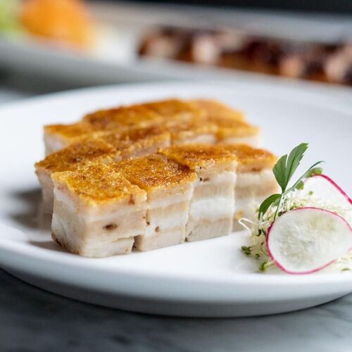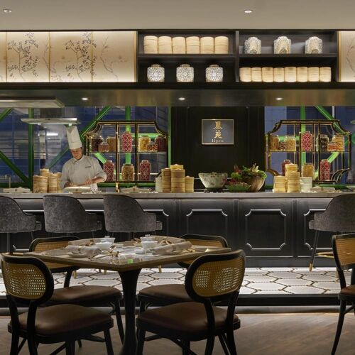 Embroidered wall panelling, a semi-circular velvet banquette, and mirrors in bronze frames prime diners for a luxury dining experience. On the menu, classic Cantonese takes centre stage – think dim sum, honey-glazed BBQ Iberico pork, and roast goose. Also check out the chef’s recommendations on the first page, often featuring one hero ingredient prepared in a myriad of ways. Most items are available in different portion sizes.