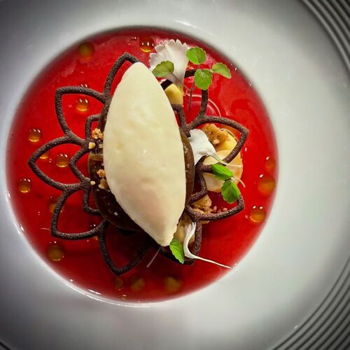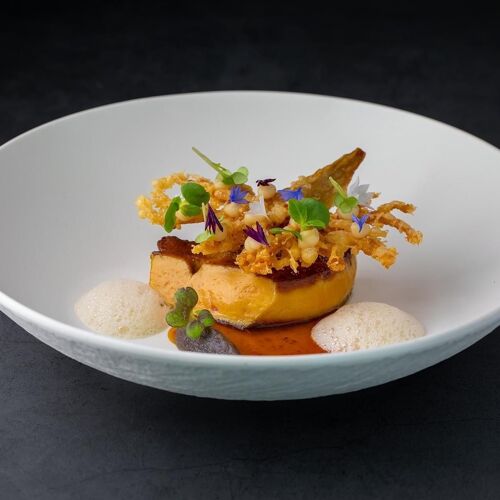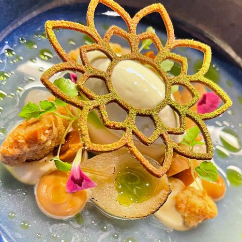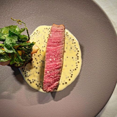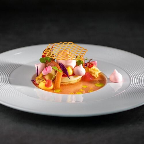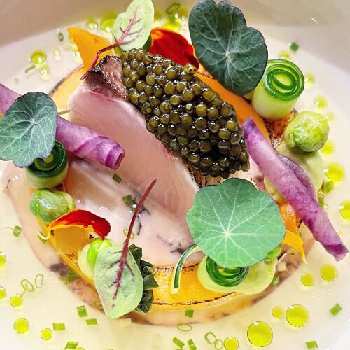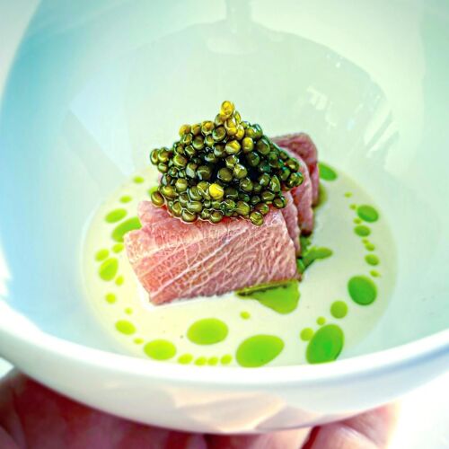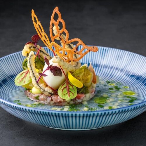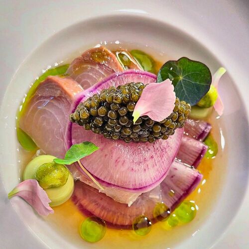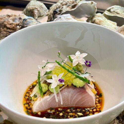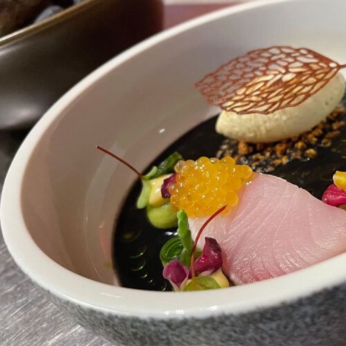 The name of this restaurant fuses the Japanese word "yu" and the Italian word "unico", hinting at the food served here. "Yunico" is also a reference to the uniquely high culinary standards they uphold. Situated on the top floor of the Kameha Grand lifestyle hotel, thanks to its floor-to-ceiling windows the restaurant affords a fantastic view of the Rhine – a view which is of course even better from the terrace. Then there is the smart, high-quality decor, all done out in red, black and white, as well as the experienced and well-coordinated front-of-house team. Head chef Christian Sturm-Willms delivers a highly contemporary take on Japanese cuisine that also looks to the Mediterranean for inspiration. Opt for the omakase menu if you want to be surprised. Alternatively, choose from the Ōsentikku set menu or the "Filet & Roastbeef" (Kobe beef).