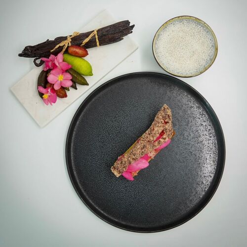 À deux pas du cirque de Navacelles, dans un petit village niché sur le rebord méridional du causse du Larzac, se trouve le restaurant de Pricillia Lebon, installé dans une ancienne bergerie. Sous les voûtes de pierre, le décor cosy et chaleureux reflète la personnalité attachante d’une cheffe venue cuisiner sur ces belles terres isolées. Le menu surprise célèbre le Larzac avec des produits issus en majorité des circuits courts (et notamment les maraîchers locaux) ainsi que des cueillettes de champignons et de plantes. Le végétal domine des assiettes intuitives, légères et aromatiques. Un hommage aux origines malgaches de la cheffe pointe le bout de ses papilles dans le dessert, avec cette crème de patate douce à la vanille. L'option végétarienne est également possible. Un lieu unique et authentique.