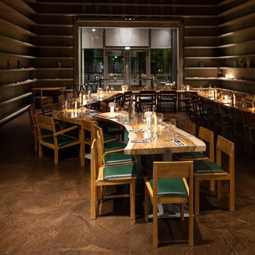La silhouette de la tour LUMA Arles conçue par l'architecte Frank Gehry comme un phare et un hommage à la région n'est pas qu'une promesse d'art - c'est aussi un fanal gourmand. Ce lieu, forcément branché, affiche des volumes impressionnants avec son immense bar en inox au centre. L'ensemble du mobilier et des matériaux a été conçu à partir de matériaux recyclés et de ressources naturelles, comme la laine de mérinos d’Arles. Dans l'assiette, le passionné d'art contemporain profite de beaux produits frais du coin (agneau des Alpilles, riz et huîtres de Camargue, etc...) apprêtés avec liberté et gourmandise par des cheffes et chefs en résidence : aubergine laquée au soja et mirin, caviar au sésame et condiment chimichurri ; tartare de quasi de veau, aïoli d'aïl noir, citron confit et salade romaine ; riz au lait, caramel au beurre salé et noisettes chouchou.... La carte des vins, surtout bio, se concentre sur les petits producteurs.