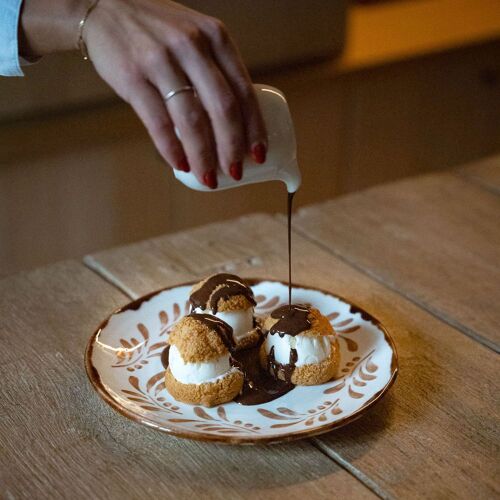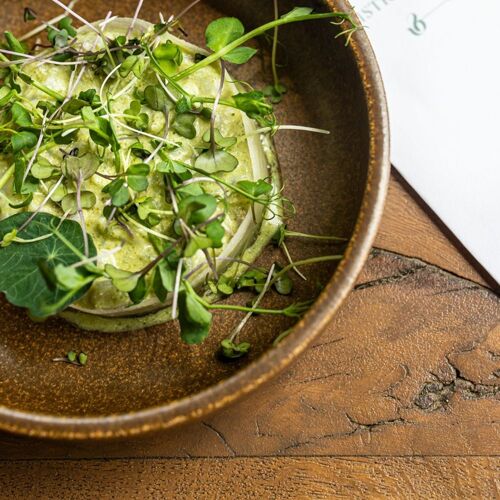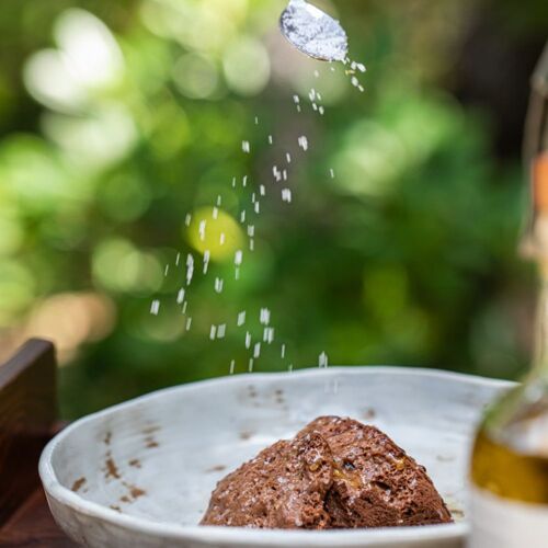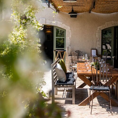 Une belle bastide isolée dans une chênaie provençale, le chant des cigales, la douceur de l’ombre, le clapotis de la piscine, une carte de cuisine traditionnelle supervisée par le chef Christopher Hache (dont la Maison Hache étoilée est voisine) et des produits frais et locaux : escargots de Mollégès au beurre persillé ; poitrine de porc du mont Ventoux confite et déclinaison de carottes ; comme une tartelette et sorbet citron... Un programme délectable à déguster sur les tables en fer forgé de la terrasse, ou dans la salle toute blanche au mobilier noir.