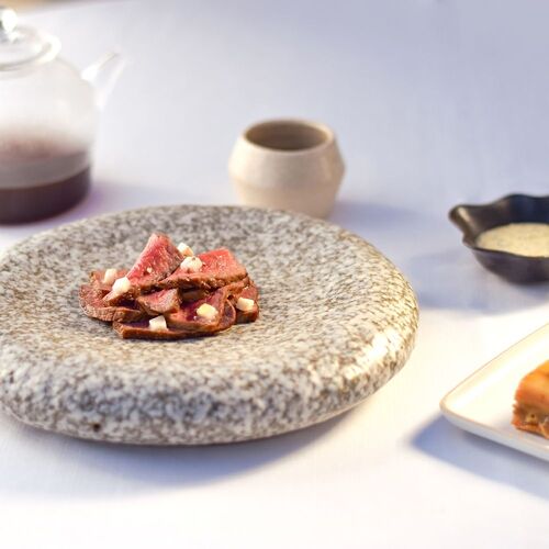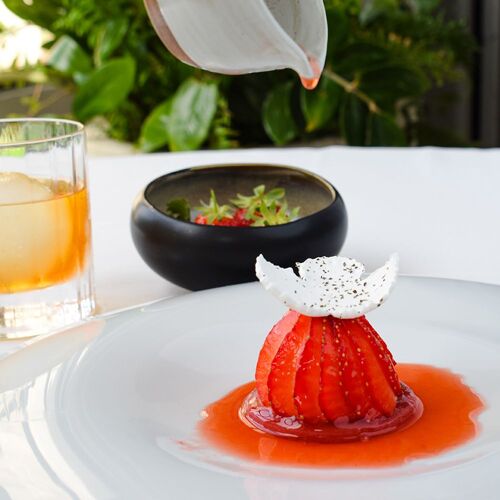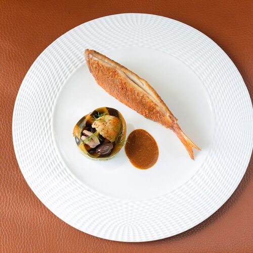 Le chef Michel Hulin réalise une généreuse cuisine provençale avec de beaux produits des Alpilles et de Camargue à l'image de ce poulpe de Méditerranée cuisiné comme une bouillabaisse en chaud-froid ou cette dégustation d'agneau rôti et confit puis fumé au foin de la Crau AOP, fleur de courgette et panisse du Moulin de Daudet... Dans un site superbe, avec une terrasse à l'ombre de mûriers-platanes et une jolie vue sur ces éperons rocheux qui ont fait la célébrité de la cité et de ses environs... Une adresse enchanteresse.