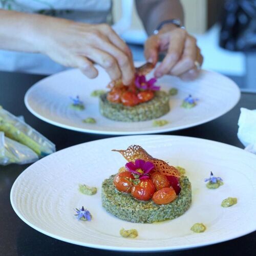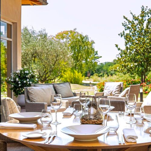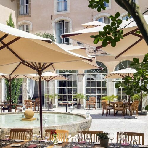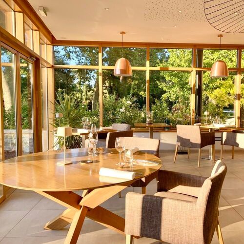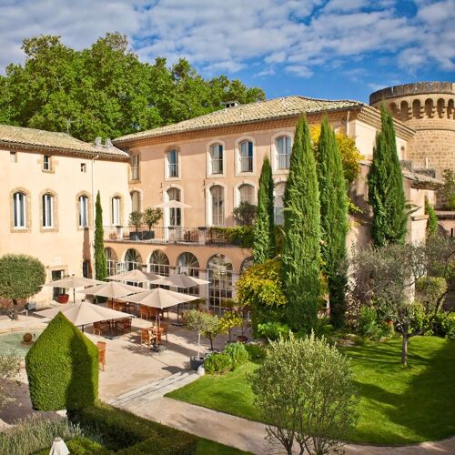 Ce beau château du 16e s. est niché dans un vaste parc entouré de vignes. La cuisine met en valeur les produits du potager et du verger bio du domaine. À déguster avec un cru en biodynamie du Domaine de la Guicharde, qui produit aussi l'huile d’olive servie au restaurant. Service souriant et appliqué. En été, on s'installe dans la magnifique cour face au jardin, autour de la fontaine.