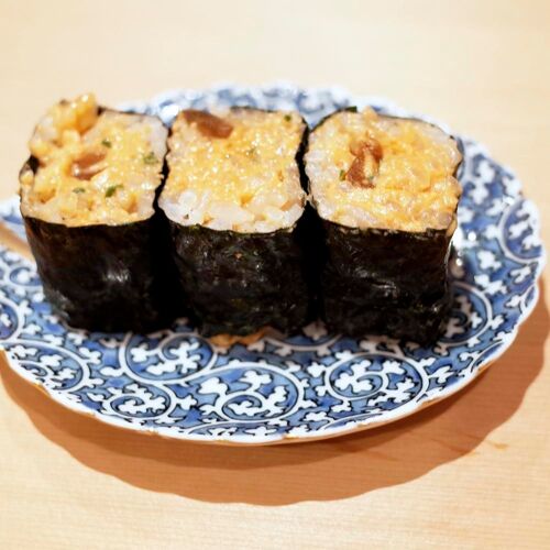 The chef was a fishmonger before pursuing the path of the sushi artisan. Every sushi piece he forms is an expression of gratitude to the fishermen and wholesalers. The meal begins with hand-delivered negitoromaki (roll sushi of tuna and green onions). Pairing rolls of monkfish liver and kanpyo (dried gourd) with sweet, thick kijoshu is inspired by how foie gras matches so well with botrytised wine. The omakase set menu is wonderfully satisfying with its generous selection of items. Add to all this the three requisites of good service: awareness, attentiveness and smiles. No wonder reservations are hard to come by.