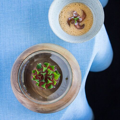 Since it was founded in 1903, this iconic Chamonix establishment has been run by the same family. Chef Damien Leveau’s regional score (Arctic char and whitefish from Lake Geneva, snails from the Mont Blanc area, locally bred pork and lamb) underscored by produce from the herb garden, such as oxalis, lovage, citrus thyme, savory, lemon balm and sage, is served in a stylish, understated interior. The spruce hamlet is also home to Maison Carrier, which serves authentic regional fare in a former Alpine farmstead.
