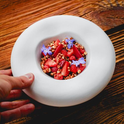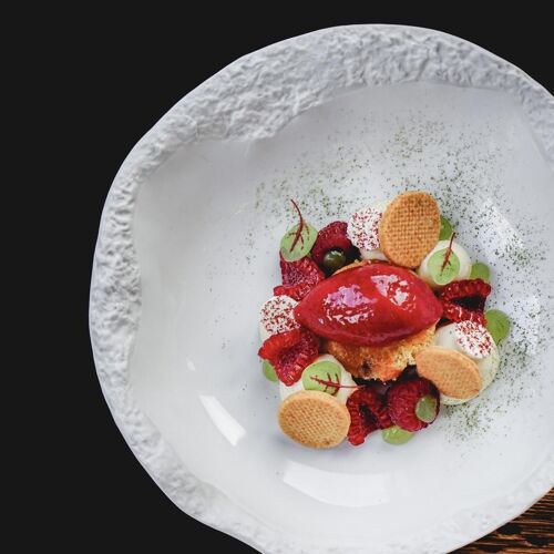 With its cosy mountain-style decor, this converted 18C coaching inn on the road to the Gorges de la Diosaz is home to a creative restaurant that piqued our curiosity. Over the course of a single multi-course set menu, the young chef cooks up dishes that draw ingredients both from the lakes and the mountains, such as Arctic char with beurre blanc, cooked to perfection, or crayfish ravioli enhanced by a beautifully emulsified bisque. On top of that, the welcome and service are the epitome of charm. Six guestrooms for an extended stay, and view of the summit of Mont Blanc.