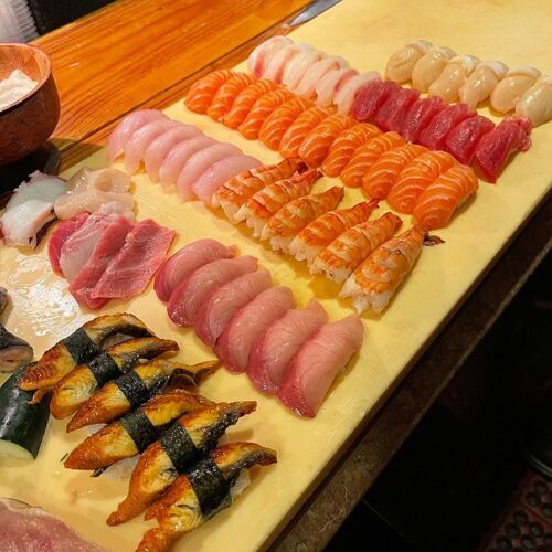 The menu may not be large, but it includes a list of daily dish selections, cooked dishes, such as mara udon or gyu tongue, and more unusual choices like kani blue crab "risotto." An entire menu is dedicated to the restaurant's well-regarded "rolls," but stick to the classic sashimi and nigiri to savor slices of fish like golden eye snapper; thick saba sitting over shiso and rice; beautiful toro sided by wasabi; or a delicious duo of ika topped with yuzu kosho.