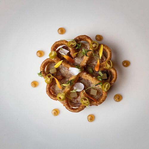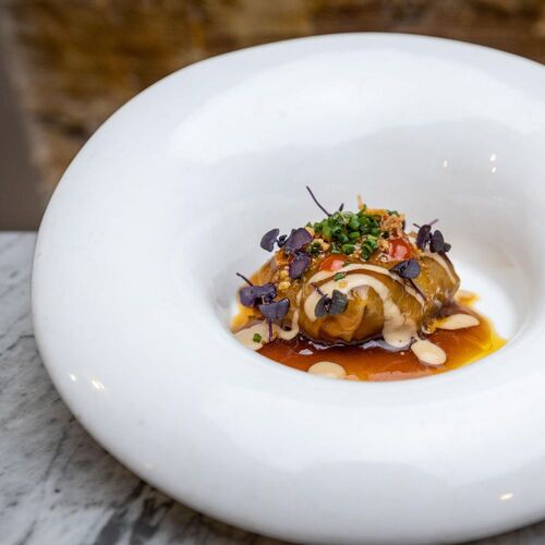 Chef Javi Estévez, who revolutionised Madrid’s culinary scene by elevating humble offal to the realms of haute-cuisine, has added to his career path with this new restaurant which, for many years was the setting for Los Galetos de Tijuca, a Brazilian eatery very popular for its small barbecued chicken (galetos). Now, following a complete overall, it offers guests enhanced space and comfort and a new direction while remaining faithful to an idea that is part of its DNA – in their own words: “we are specialists in cooking offal, but we do other things as well.” The dining experience here is based around three tasting menus (M, Memoria 2015/2023 and The Menu), the aim of which is to recapture the city’s “offal culture” while reinterpreting it with contemporary concepts and techniques. This concept sees the kitchen working with offal such as brain, trotters, tripe, combs, and the famous fried and confit head of suckling pig, one of its most popular dishes, and one that we all share on our social media feeds!