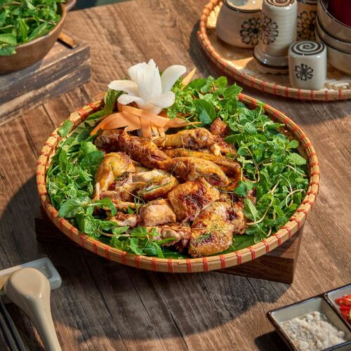 Housed in a century-old villa, Hà Thành Mansion spans three uniquely designed floors, each radiating artistic charm. The diverse menu, crafted with locally sourced ingredients to guarantee freshness, celebrates Northern Vietnamese cuisine. Standout dishes include the grilled black pork with galangal, notable for its golden crust and hint of ginger. The cocktail bar at the entrance is the perfect spot for a drink before or after your meal.