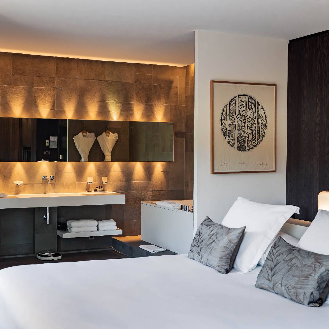 Die Eigentümer haben das Gebäude selber designt. Als es um die Möblierung des Interieurs ging, hatten sie das Glück, einen Freund wie Christophe Pillet zu haben. Er ist ein Pariser Designer, dessen Kreationen in Tablets Auswahl in schöner Regelmäßigkeit repräsentiert werden. Daraus resultieren Suiten, die einen daran erinnern, wie erfrischend und wirkungsvoll eine minimalistische Ästhetik sein kann – mit all den Farben und Texturen, und der einfachen Behaglichkeit, die Ruhe in ihrer wohligsten Form bieten.