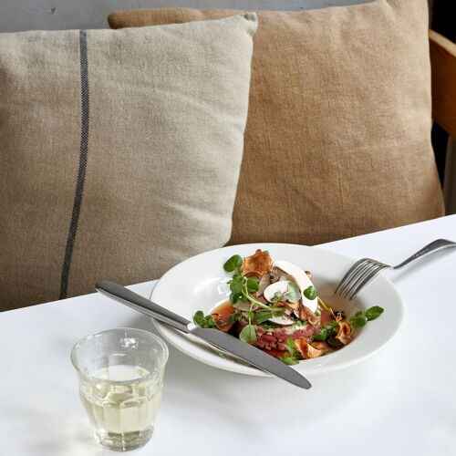 A mostly youthful and hip crowd frequents this pleasant bistro, which matches the energy of its neighbourhood. Lounge music plays in the background, the impressive drinks list features a notable selection of orange wines. The kitchen is run by a female chef who has composed an extensive and enticing menu that combines Mediterranean verve with Middle Eastern spiciness. For instance, she barbecues lamb to medium-rare and serves it with orzo cooked in a kokoreç broth and greengage. Tip: For a truly filling meal, consider ordering an additional starter.