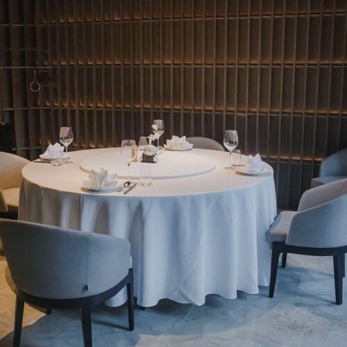 Thanks to its mindful design, the guesthouse restaurant fits into its lush surroundings well. The kitchen strikes a fine balance between Huaiyang traditions and creative flair. On every table you see their signature lantern-shadow fish: sliced grass carp belly is air-dried, seasoned and roasted into paper-thin translucent slivers. Their spicy-sweet taste is utterly addictive. Brine-poached squab is given a faint mala seasoning with Sichuan pepper.