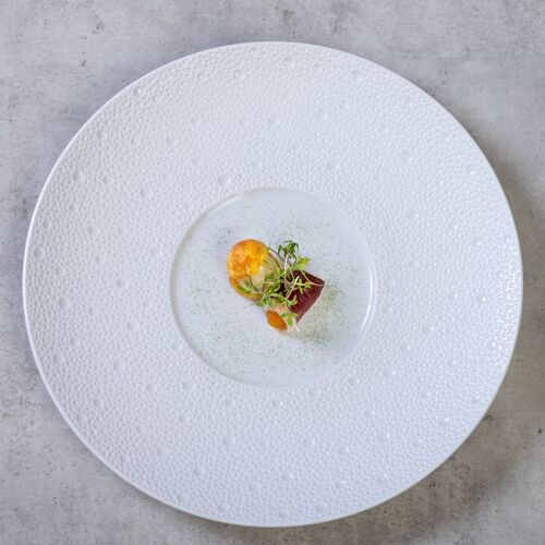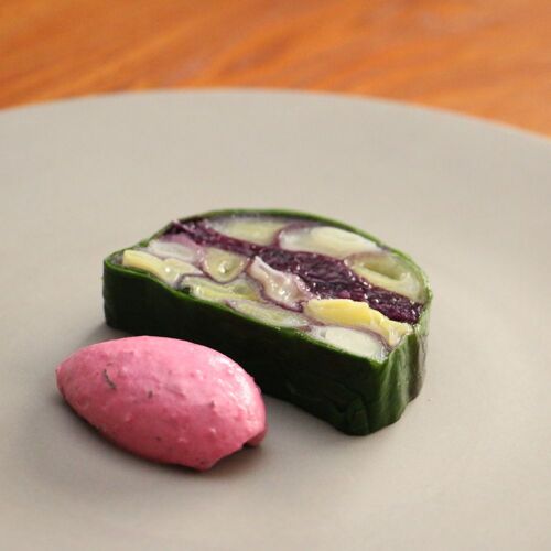 In the French countryside, the chef absorbed the love of hometown; in Paris, he learned the importance of the classics. The chef has built relationships of trust with producers and uses local ingredients to convey the richness of Nara’s natural bounty. He sets great store by sauces, from his respect for the classics. His speciality is poached Gojo eggs in red wine sauce. His wife, his constant companion since his apprenticeship, will suggest wine pairings.
