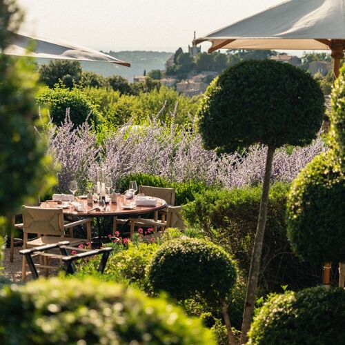 This iconic Luberon restaurant is run by a talented team headed up by chef Noël Bérard. His modernised take on Provençal cuisine finds joyful expression in two tasting menus, one of which focuses on plants. High-quality ingredients (including veal from Gordes, trout from the River Sorgue, oysters from the Camargue, pork from Monteux etc), bold sauces and jus and a delicate style. There is a magnificent terrace from which you can admire the sunset. Also of note in this enchanting setting in the heart of Provence is the wood-fired cooking at La Bergerie, and of course the comfortable guestrooms and suites.