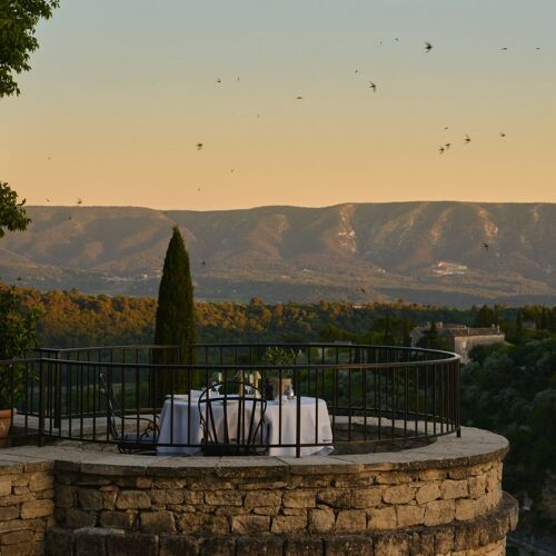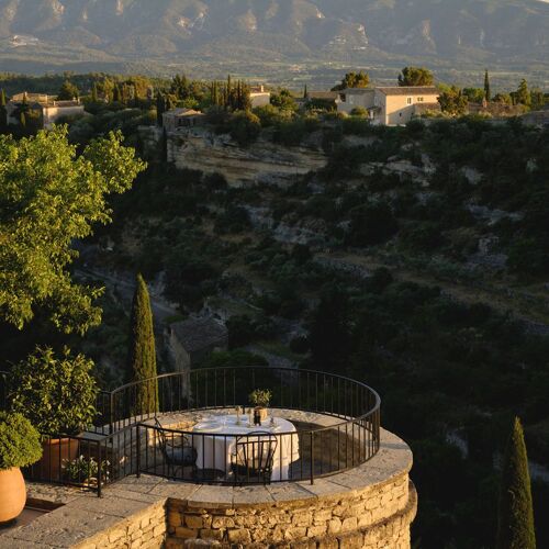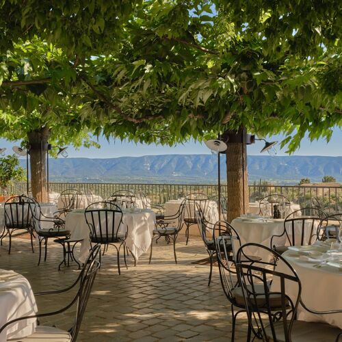In one of the most picturesque villages of Luberon, this stately home overlooking the valley now houses a luxury hotel and this restaurant, whose exquisite terrace is shaded by chestnut trees while commanding a knockout view. In the manner of a luxury brasserie, the menu adds a Provençal twist to a patriotic lineup of culinary classics: local lamb with green peas and smoked eel. Swish, seamless service.