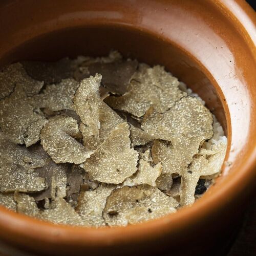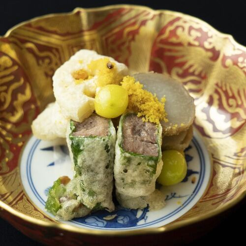 The Japanese love of small spaces is deeply connected with the spirit of the tea ceremony and its cultural background. The counter, affording just the right distance between guests and Chef Toshiya Kadowaki, seats just six. The private room, whose low ceiling suggests a tearoom, is so intimate that guests can feel each other’s breathing. The menu features dishes where ingredients in season come together to create fleeting sensations that linger in the memory forever. Truffle rice, enriching the meal in both aroma and flavour, is a case in point.