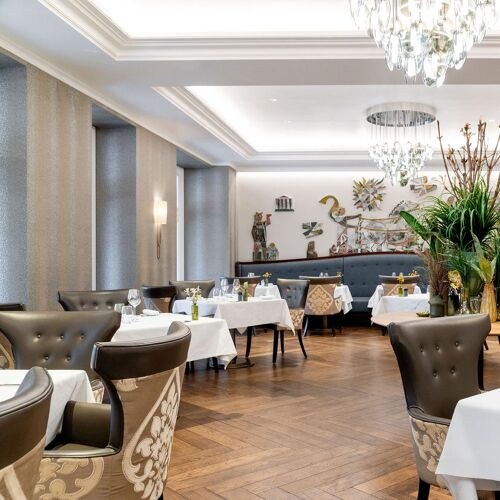 Im prestigeträchtigen Hotel Royal Savoy, das vor allem beim spanischen Hof sehr beliebt ist, besticht eine Brasserie durch ihre zeitlose Eleganz, ihre raffinierte Küche und ihren aufmerksamen Service. Besonders zu empfehlen sind das „Menu du Marché“ und das „Menu de la Brasserie“ in vier Gängen, die von einem soliden Savoir-faire zeugen: Meeresspinnenfleisch mit Krustentier-Mayonnaise, Granny Smith, Sellerie und Liebstöckel, Meeresakkorde mit Aioli und Fenchel-Croquant, Rippenstück vom Schweizer Angus-Rind mit Kartoffelpüree, Mille-feuille mit Vanille aus Madagaskar. Der beeindruckende verglaste Weinkeller hat keine Geheimnisse für die zwei Sommeliers. Im Sommer kann man auch auf der hübschen Terrasse sitzen.