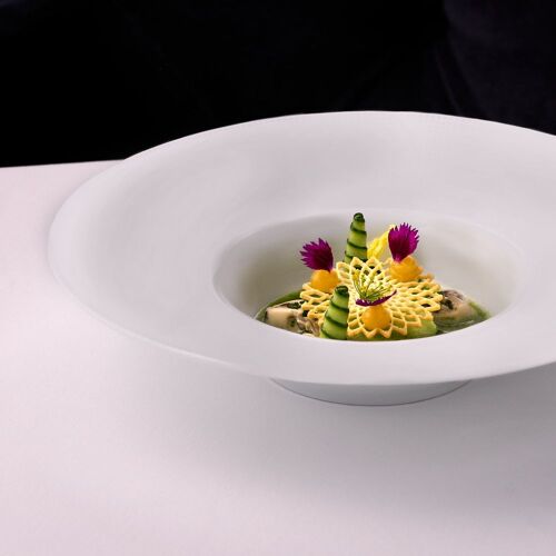 The culinary centrepiece at Hotel Oswald! This elegant fine dining restaurant is situated in the basement of the Landromantik Wellnesshotel Oswald located in Kaikenried, a Bavarian Forest village with a population of some 550 people. Thomas Gerber has been chef here since 2014, after holding a number of positions in renowned kitchens. His modern-inspired set menu comprises four to eight courses; classic in their foundations, the dishes are crafted with the utmost precision. The wonderfully fresh, perfectly glazed John Dory is a prime example of the subtlety with which he showcases top ingredients – covered with plenty of sliced Périgord truffle, the fish is accompanied by a light and airy celeriac purée and an intense Madeira sauce with a fine, perfectly harmonious sweetness. Choose a bottle from the nicely curated wine list and enjoy attentive, ultra-friendly service.