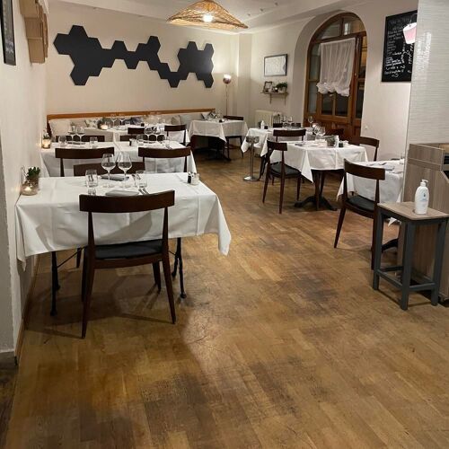 Au cœur de la vieille ville de Carouge, on est chaleureusement accueilli dans ce restaurant convivial, lumineux et meublé avec goût. Le chef propose une cuisine fraîche et aromatique, à la rencontre du classicisme et de la modernité, et qui ne manque pas d’ambition : filet de merlu, crème de cèleri menthe, aubergines grillées, sauce yaourt citron vert ; joues de cochon, crème de carottes, champignons de paris, jus au curry ; mais aussi quelques plats végétariens, comme le houmous de pois chiches, naan, poireaux confits et ciboulette. En été, on s’installe sur la petite terrasse en devanture du restaurant. Accords mets et vins proposés.