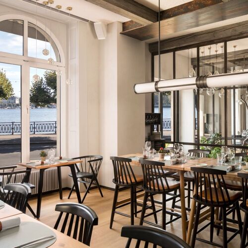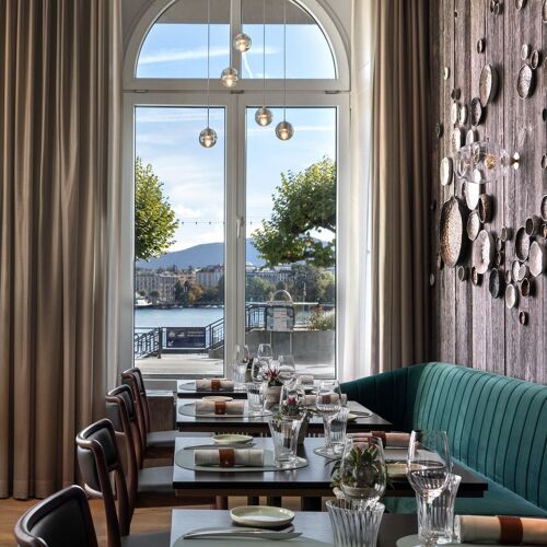 Véritable enclave nordique au sein du Ritz Carlton de Genève, le Fiskebar a gagné ses titres de noblesse grâce à une réjouissante cuisine iodée, qui utilise le meilleur des circuits courts, avec ce qu'il faut de techniques bien maîtrisées. Une cuisine scandinave fraîche et saine, mâtinée de discrètes touches méditerranéennes, et qui met en avant techniques de fumage et de fermentation. Tout cela se déguste dans un décor mêlant avec goût matériaux rustiques et touches plus modernes, entre tables qui donnent sur la cuisine ouverte ou celles qui embrassent la vue sur le lac. Et, pour ne rien gâcher, la carte des vins réserve de jolies surprises, avec de nombreuses références en biodynamie.