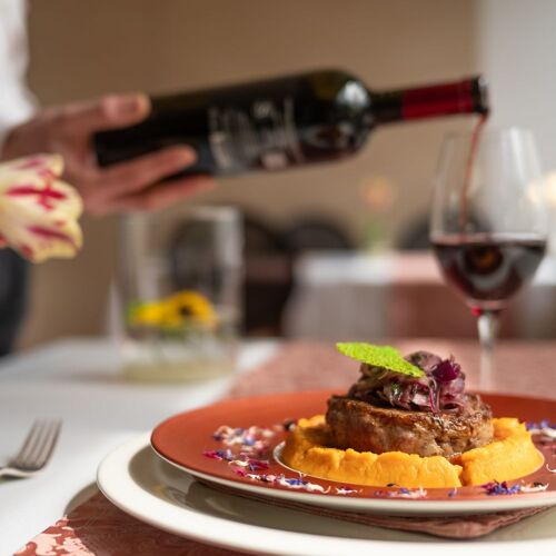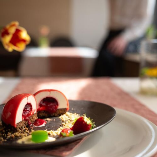 Housed in a modern hotel just outside the town centre, this restaurant boasts an attractive, bright dining room on the first floor that comes as a surprise given its fairly anonymous location. Although the menu is not extensive (and is even more restricted at lunchtime), it changes daily and showcases traditional local dishes reinterpreted with a modern twist. Make sure you try the žlikrofi (delicious potato-filled ravioli) served with a type of lamb stew – a local speciality for which the restaurant is a certified producer.