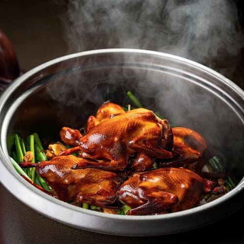 Perforated windows, ceiling fans and chandeliers impart retro Lingnan flair. Chef Feng also bases his recipes on Lingnan traditions and seasonal local produce, but slightly tweaked to the local palate and spruced up with unique creativity. His Shunde minced fish soup perfumed by makrut lime leaves, and roast goose that takes 45 minutes to cook in the oversized grill, tend to sell out fast. End the meal with silky ginger milk curd in Shawan style.