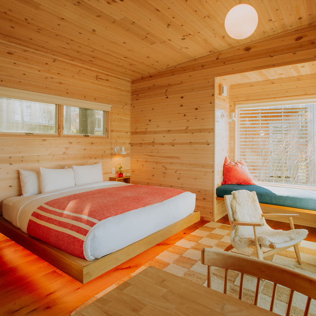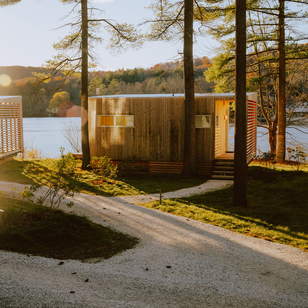 Tucked into a quiet corner of North Egremont, Prospect is more than just a retreat, it is a reawakening. The lake does most of the talking, catching the light at all hours, while a chorus of rustling maples and wind chimes fills the gaps. This is a place shaped by intention, from the hand-built Scandinavian-style cabins and restored wetlands to the Cliff House’s suspended porch and knockout views of the Taconic Range. Come for the lake. Stay for the reminder that you don't need much to feel full.